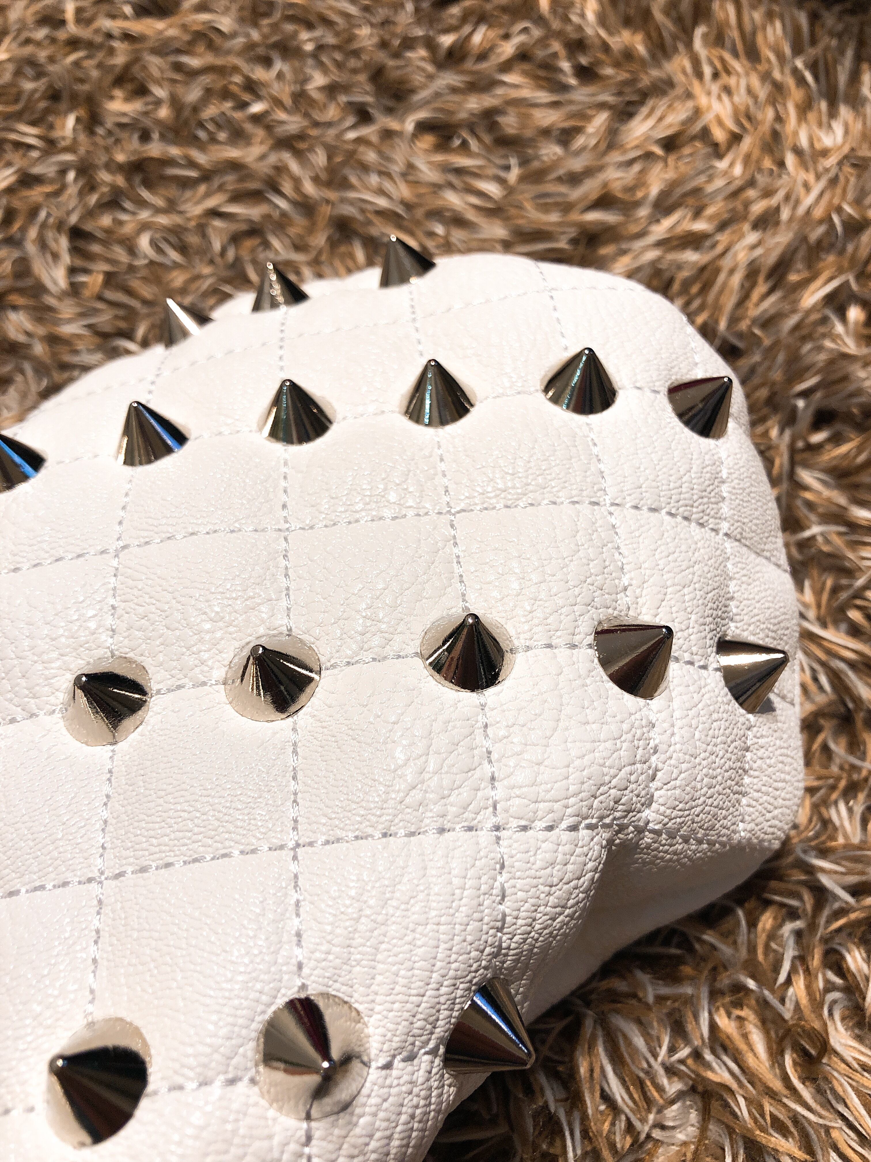 丁寧なキルティングステッチにシルバーのスタッドが丁寧に並べられています。