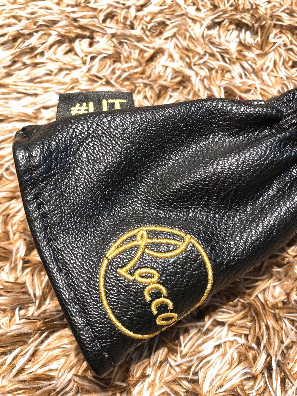 Roccoの可愛いロゴを金色で刺繍されています。